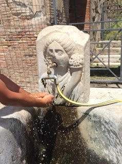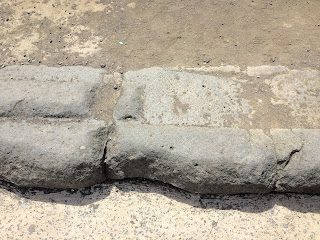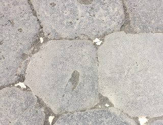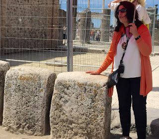 Our wonderful tour guide showing us the stepping stones and chariot wheel marks in the road.