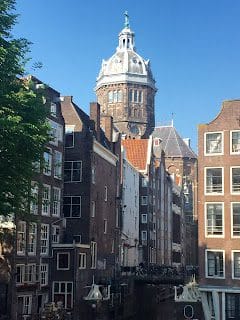 Gothic-style Oude Kerk church - Amsterdam's oldest church and located right next to the red light district...