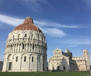 Piazza dei Miracoli which includes the Cathedral, Baptistery, Bell tower or Leaning Tower, and Monumental Churchyard.
