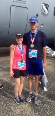 Well it's that time of year again - Brad and I ran the Air Force Half Marathon in Dayton, Ohio this past weekend. We always enjoy walking through the Expo, and carbing-up the evening before - this time at the Cheesecake Factory.