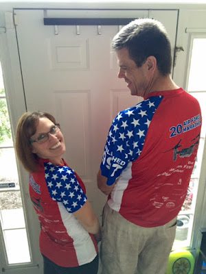 The shirts were extra fancy this year because it was the 20th Anniversary of the Air Force Marathon.