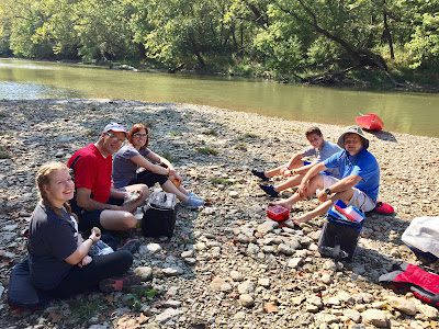 Enjoying our picnic lunch on the banks of the river.