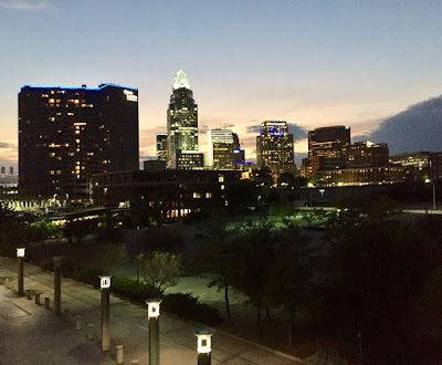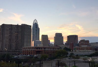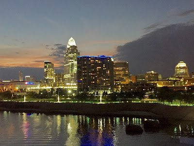 View of downtown Cincinnati at dusk.
