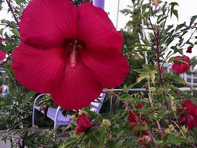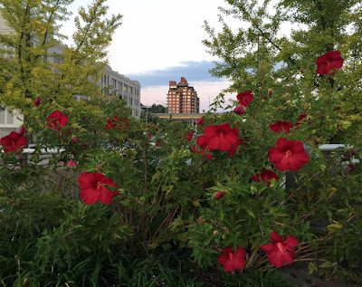 Beautiful flowers along the bridge and river paths.