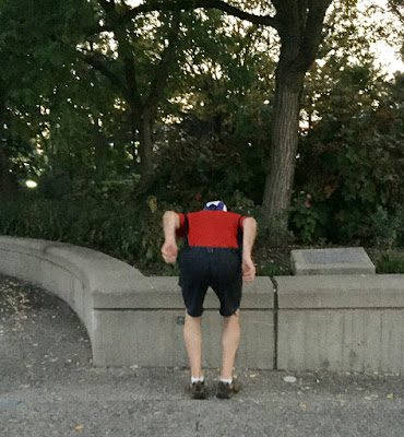 Brad pretending he is 16 again by attempting to jump a cement wall. What I didn't capture was him not quite making it, and falling backwards on his buttocks ;)
