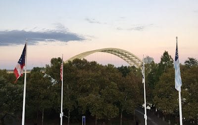 Stadium and waterfront on the Ohio side.