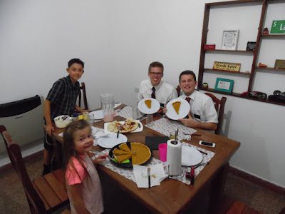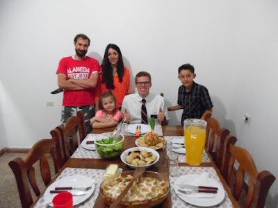 I never heard if Aubrey was able to celebrate Thanksgiving or not, but I'm thinking not since her mission president is from Argentina. But, luckily, a family who moved to Northern Rosario from Arizona, three months ago, invited Breck over for a real Thanksgiving meal!