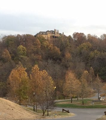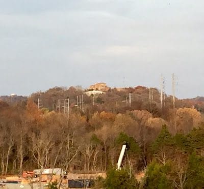 Yes, I must admit that we did some stalking of homes while on our little drive. There are several country music stars that have homes in Franklin, but the one we were most interested in was Dave Ramsey's house. So here is the view of his home from the top of the Franklin hospital parking garage (Deb knows how to stalk a house properly!).