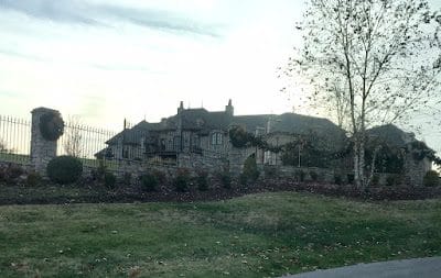 View of his home from the entrance of the neighborhood, which incidentally was on top of a mountain, and contained many 'holy cow' homes (but not quite as holy cow as Dave's!).