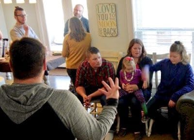 Cindy, Todd, and kids, all sitting on one small couch.