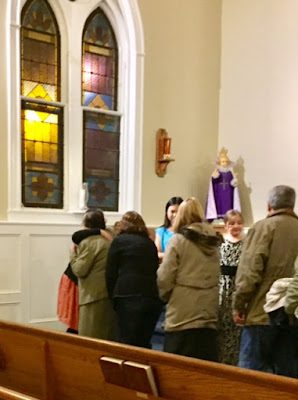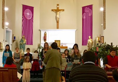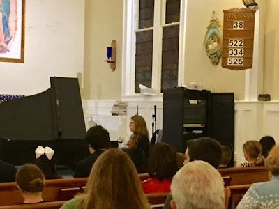 One of the things I enjoy about the Christmas season is all the Christmas concerts. Since we are down to one child, we only had two to attend this year. Merinda's piano recital was held at an old Catholic church downtown. She has a new teacher, Edna, who is very old-school.