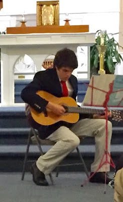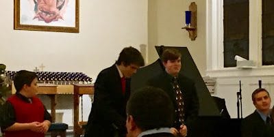 In the middle of the recital, Edna recited the whole Christmas Story by heart. When the recital was over, Edna had all her students stand in a line so she could give them all a hug and also so we could shake all their hands and tell them what a great job they did.