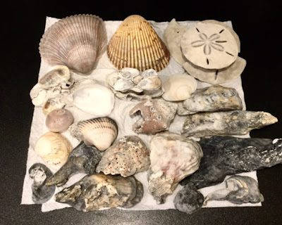 Here is our collection of various types of cockle shells. We didn't take these ones home because they were relatively small, I think most of the larger ones got smashed by the waves, which can get pretty big on Anastasia Island.