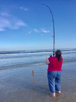 I asked the women what she was fishing for, and she said sharks (I didn't know if that was such a great idea with all the little kids playing on the beach!). It was a couple who was fishing together, the husband would swim the line out and secure it somehow (they were using fish as bait). Hmmm, interesting!