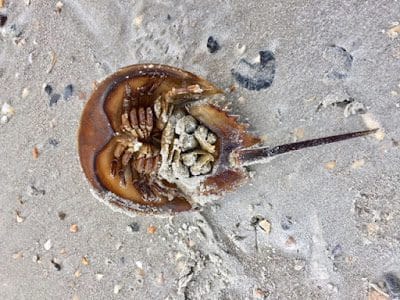 As you can tell from the underside, Horseshoe Crabs are more closely related to spiders, ticks, and scorpions than to crabs.