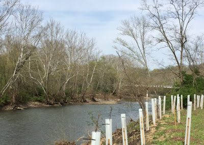 Newly planted trees along the trail.