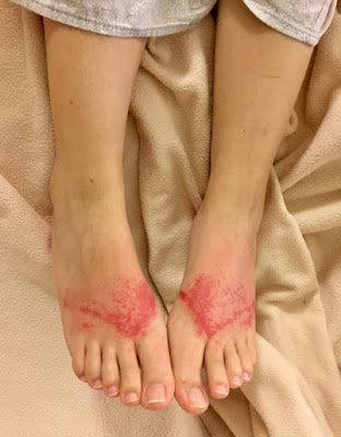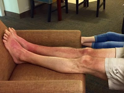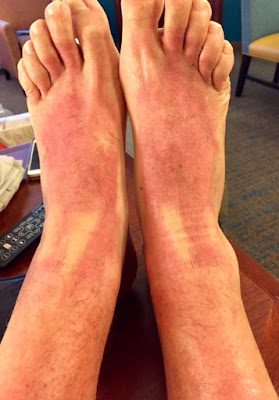I forgot to put sunscreen on Brad's feet and legs the second day at the beach,