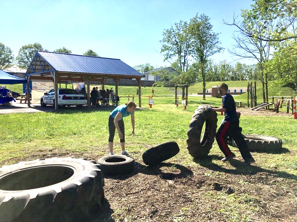 Ruthie's oldest son on the rope climb and tire obstacle.