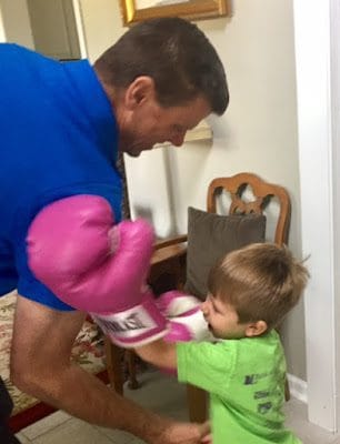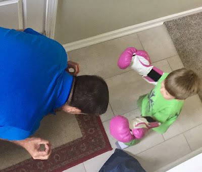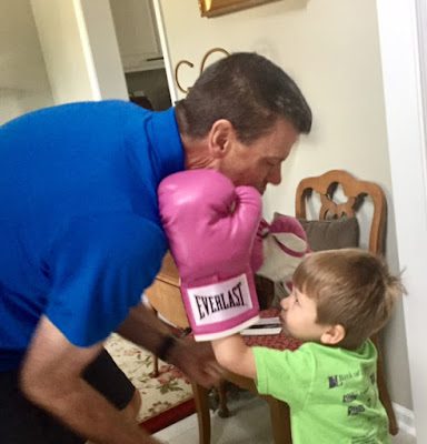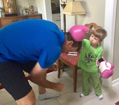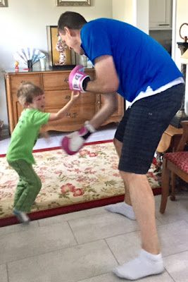 Once the gloves were on, however, he needed something (or someone) to punch (of course...he's a four-year-old boy!). Brad seized the opportunity as he egged Archibald on.
