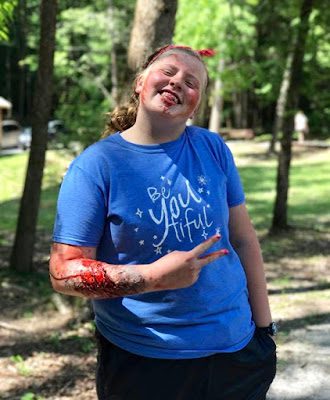 Liz sporting an awesome arm wound!