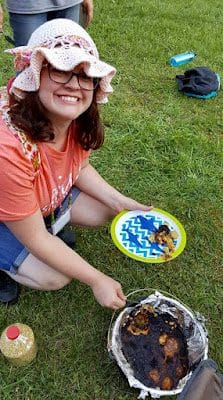 The girls made dutch oven cobbler for dessert.