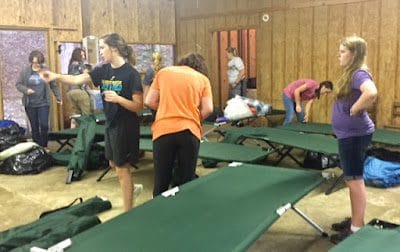 Putting up about 40 cots in the "Black Hole", or the cabin where Merinda slept with the First Year's.