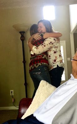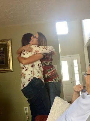 SURPRISE!!! Brittney jumped out and gave Aubrey a big hug!