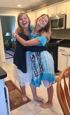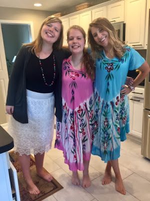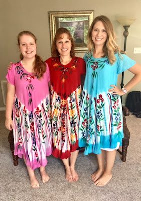 Modeling the handmade/painted Chilean dresses Aubrey brought home for each of us.