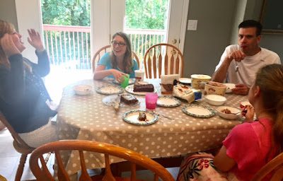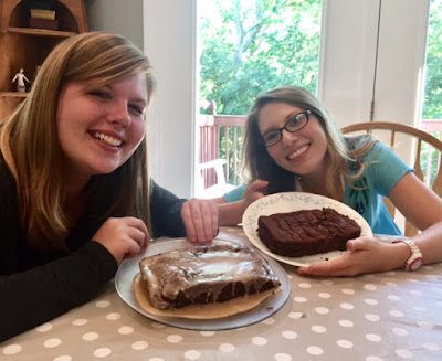 The Sunday after Brittney arrived we decided to celebrate Aubrey and Brittney's birthdays since they will both be out West for their birthdays this year. Brittney picked the cake (Gluten Free Applesauce cake) and Aubrey chose her favorite ice cream (Peanut Butter Chocolate).