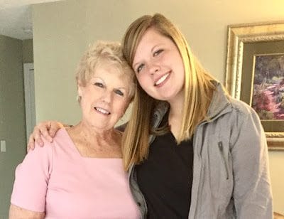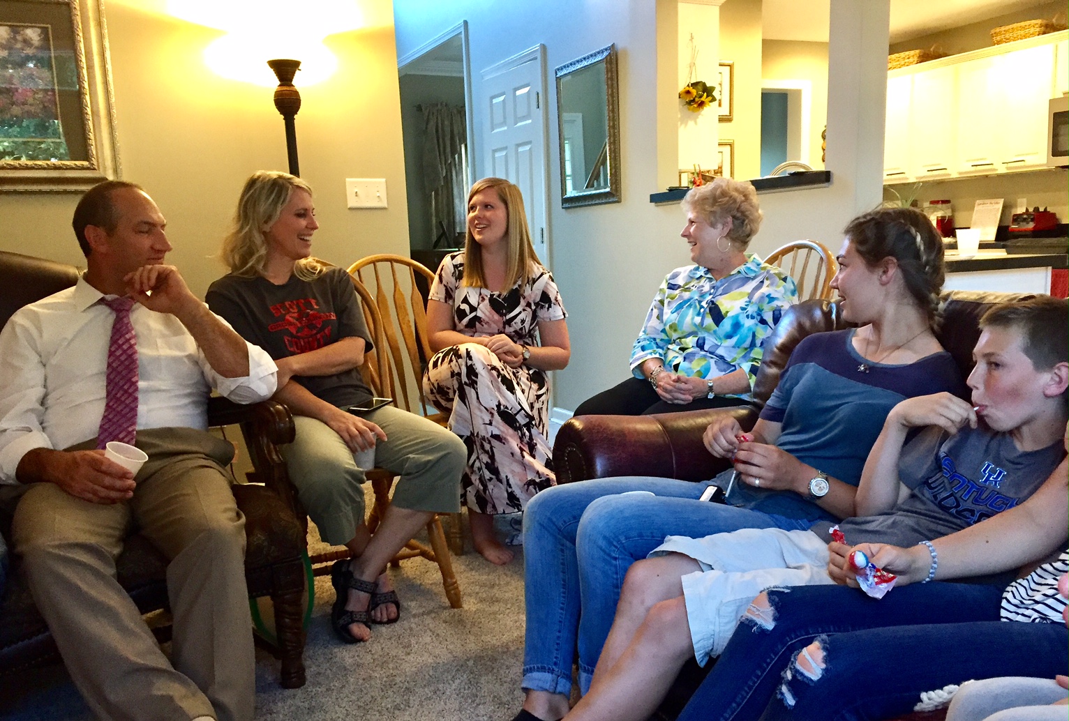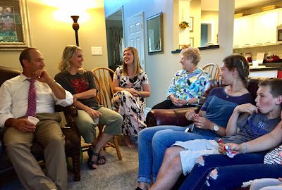 Mom, and the rest of us, also enjoyed visiting with the Holts and Barbers during Aubrey's homecoming open house.