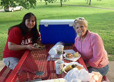 Mom was a good sport even when we dragged her to Scott Co. Park for Georgetown's YSA's FHE (Mom visiting with Veronica Holt).