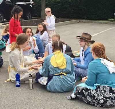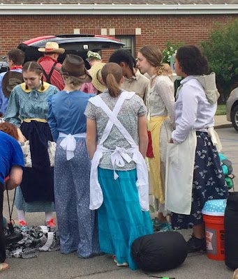 The girls looked so cute in their braids and pioneer dresses.