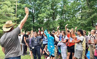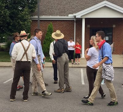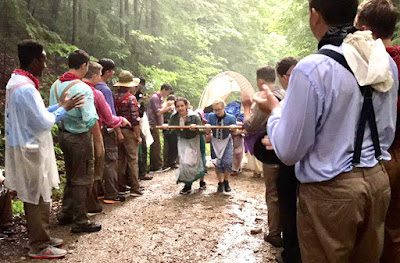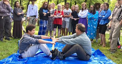 The third and final day of Treck it actually stopped raining long enough to play some pioneer games (Rex and his son Austin).