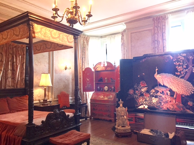 One of the guest's room decorated in an oriental theme, with some furnishings from China.
