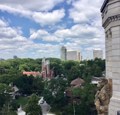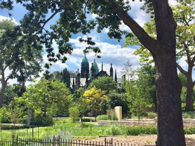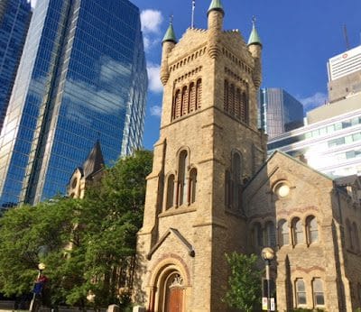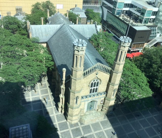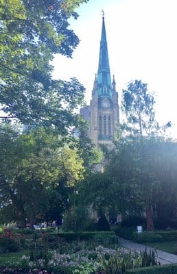 There were numerous churches and parks intermingled between the tall skyscrapers, such as St. James Cathedral Church and Park,