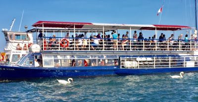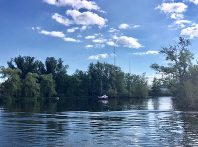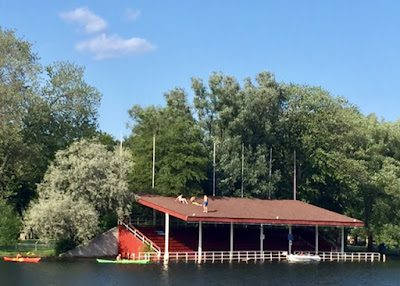 Watching some guys sunbathe on a rooftop. The weekend we visited, many of the islands were closed to the public, due to flooding.