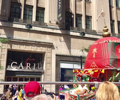 We saw many weddings during our short stay in Toronto. This particular wedding processional looked like a parade with musicians, dancers, and brightly colored carriages carried on men's shoulders.
