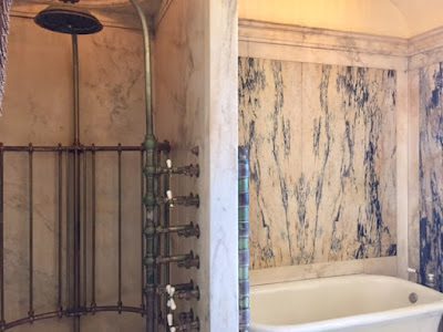 Pellatt's white marble bathroom cost $10,000 to build and included a marble-lined bathtub, and shower with its own heater, large shower head, and multiple side-spraying heads.