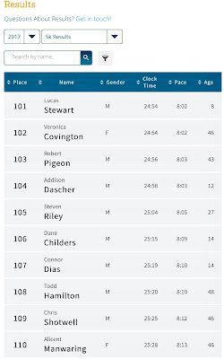 I came in 110th place (out of 1104 runners), but it sounds better when I say I came in 20th out of all the women!