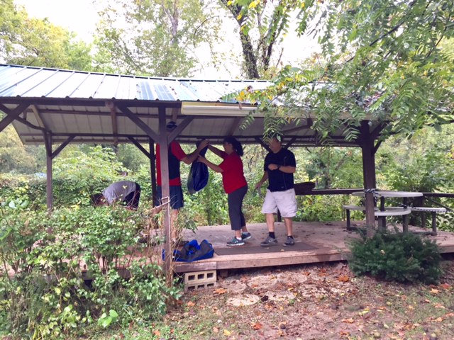 The next morning I awakened by drips of water falling on my face. It had began pouring the wee-hours of the morning, and our non water-proof tent (and everything in it) was completely soaked! We took our rain-soaked camping gear to the pavilions to try and drain and squeeze some water from them before throwing them in our vehicles. But, being the true campers that we were, we braved the weather and enjoyed our last day of camping by playing games under Holt's tarp (until it began leaking too much and forcing us to move to the pavilion) and enjoying yummy breakfast burritos for breakfast, and barbecue hamburgers for lunch.