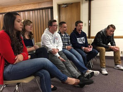 Even though they've all been off their missions for awhile, the returned missionaries still had to listen to Pres. Catala lecture via Skype from Chile!