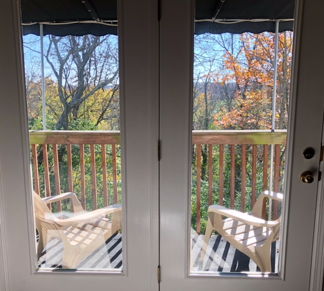 I then decided to take a picture looking through by bedroom doors at all the Fall foliage in my own backyard.