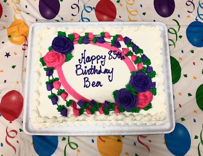 My good friend Bea turned 85 the day after Thanksgiving, so the Griffith family and myself threw her a surprise party. I ordered her cake from Costco because I love their cakes (do you see a theme here?).
