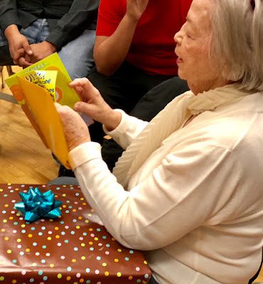 While eating cake we watched a slide show of Bea's growing up years created by Brandi, with pictures sent by Bea's son Bruce.