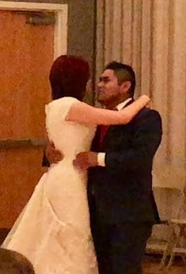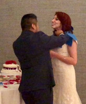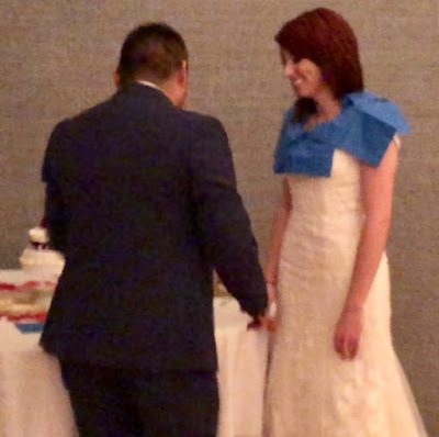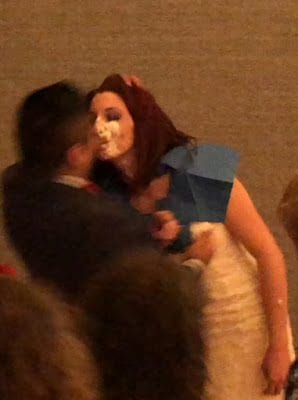 I've never understood the smash cake in each other's face thing, but at least David was nice enough to place napkins around Shay's neck and protect her dress somewhat.