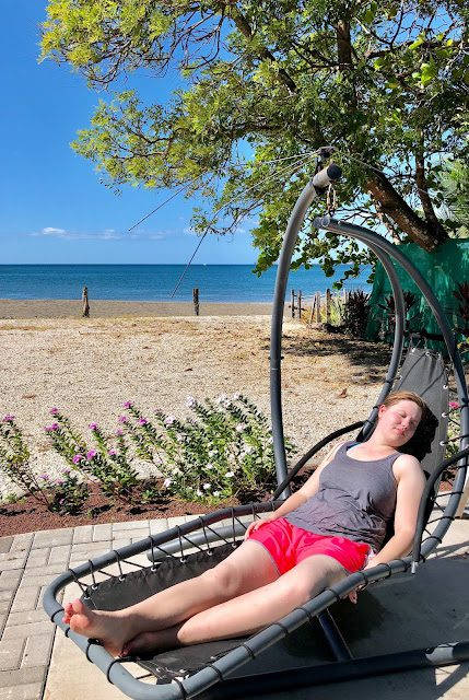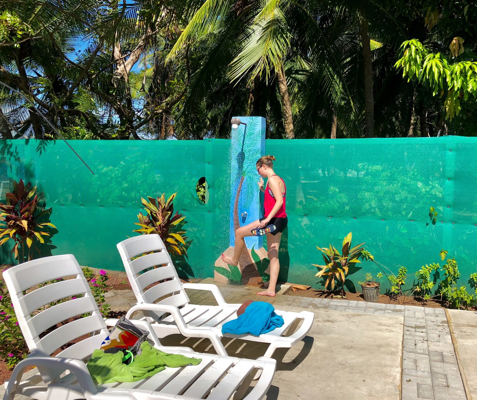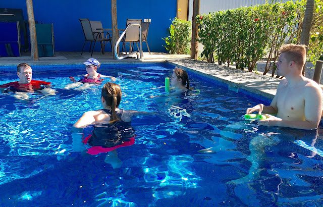 After rinsing off in the outdoor shower, we all took a dip in the pool.
