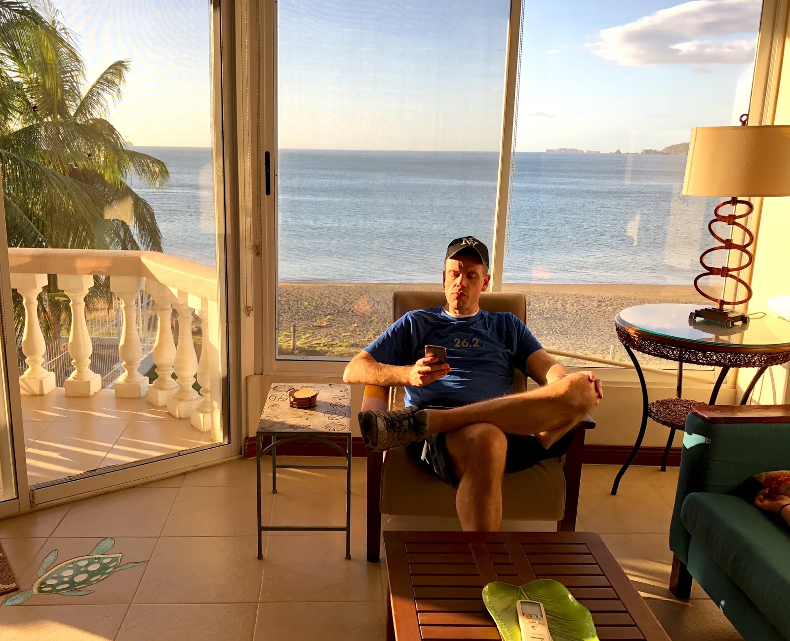 Behind Brad you can see the condo's private beach, and beautiful view of the ocean.