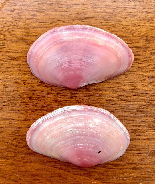 Pretty pink shells that Brittney and I collected. In the water their color was much more vibrant and hot pink.