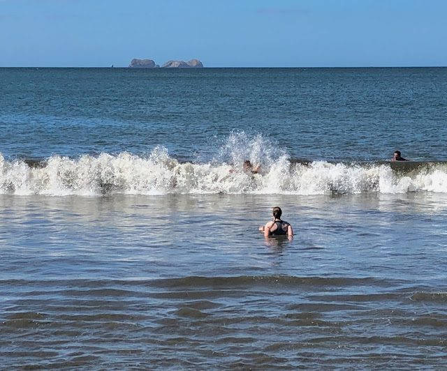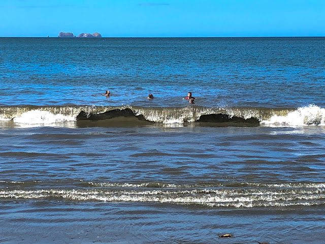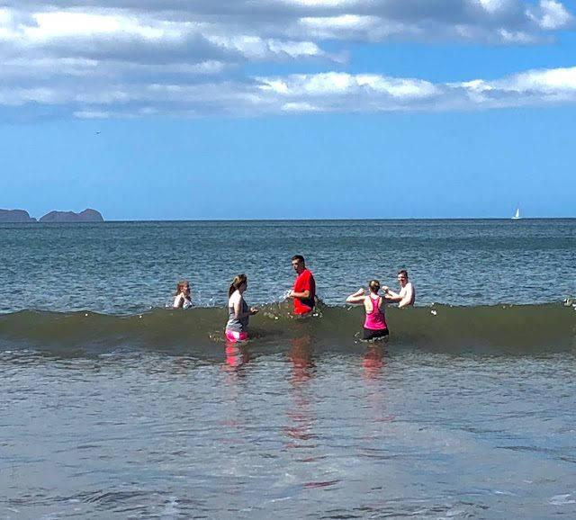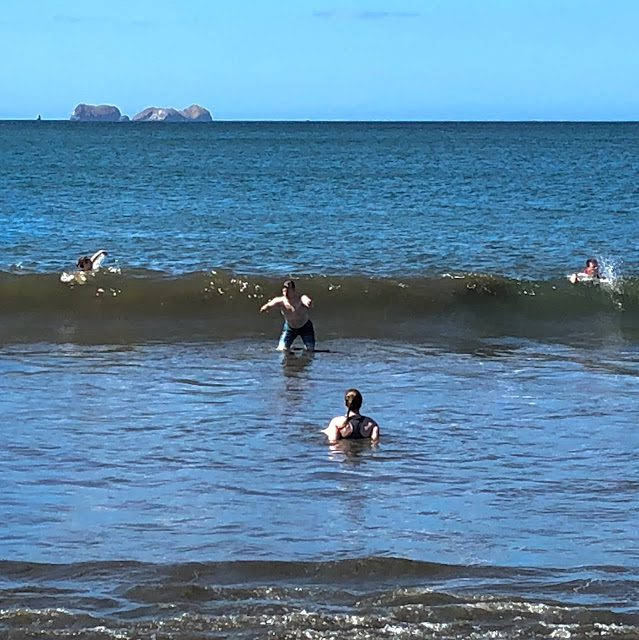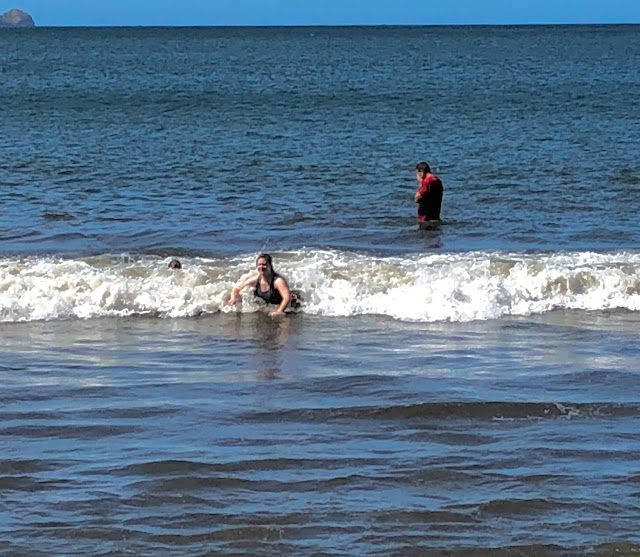 By mid-day and with temperatures reaching ninety, everyone was ready to do a little body surfing ...