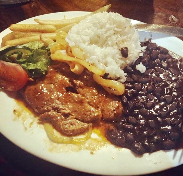 And the food was just as excellent. We again ordered a typical Costa Rican dish of black beans, rice, and meat, with fried plantains and salad on the side, and freshly squeezed juice. After dinner, we walked to a little market down the street to buy some Brittney-friendly food.